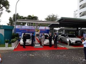 Xe điện Mitsubishi iMiEV cùng với trạm sạc và hệ thống NLMT áp mái tòa nhà EVNCPC